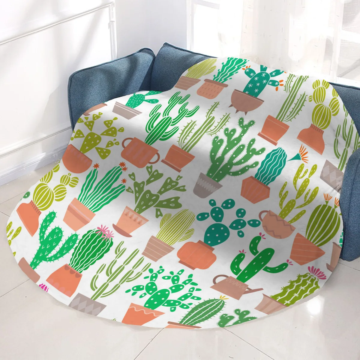 Product Name: Super Soft Plush Flannel Blanket Cactus Flower Plant Blankets Round Throw Blanket For Beds